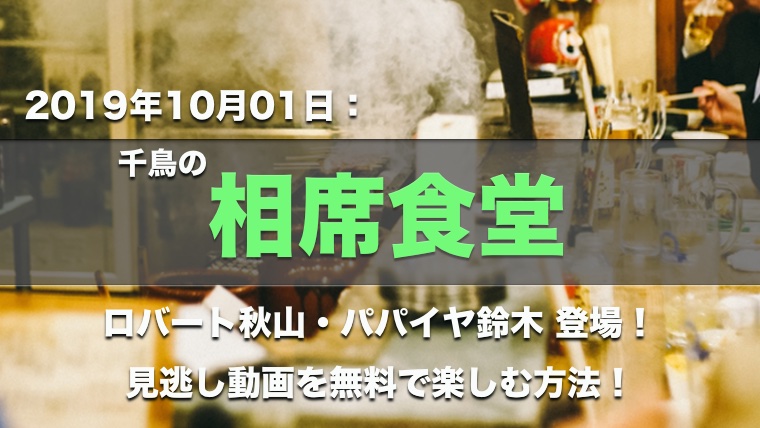 今回は、2019年10月01日に放送された、ロバート秋山さんとパパイヤ鈴木さんが、それぞれ群馬と北海道のへそ祭りに挑んだ「相席食堂」を無料で視聴する方法を紹介します。