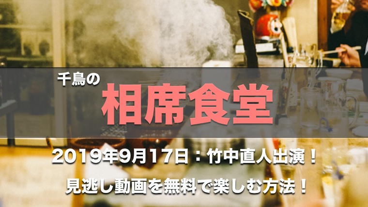 今回は、2019年9月17日に放送された、超大物で超個性派俳優の竹中直人さんをゲストに呼んだ「相席食堂」を無料で視聴する方法を紹介します。