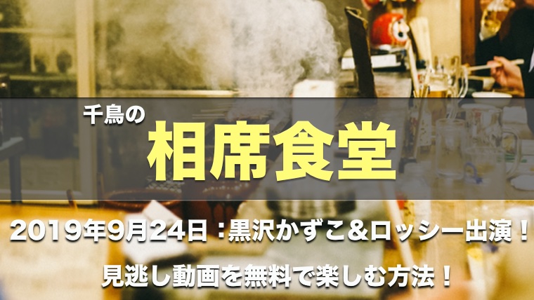 9月24日に放送された森三中黒沢かずこさんと野性爆弾ロッシーさんをゲストに迎えた「相席食堂」の場合は、2019年9月24日の放送終了後〜2019年10月02日(水)の00時22分まで配信されています。
