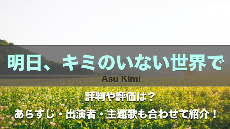 今回は、映画「明日、キミのいない世界での評判や評価だけでなく、あらすじや出演者・主題歌まで見ていきましょう。