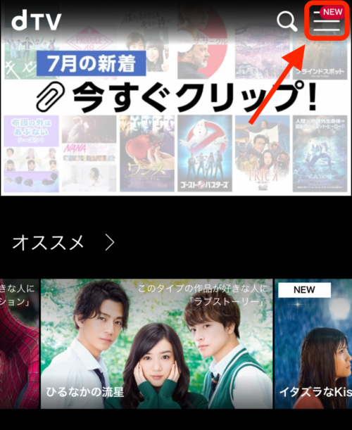手順1:「dTV」にアクセスし、上にあるアカウント(右上の三本線)をクリック