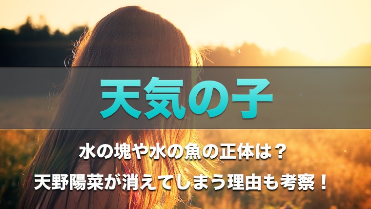 今回は、水の塊や水の魚はいったい何なのか、また、天野陽菜が消えてしまう理由も合わせて考察していきます。